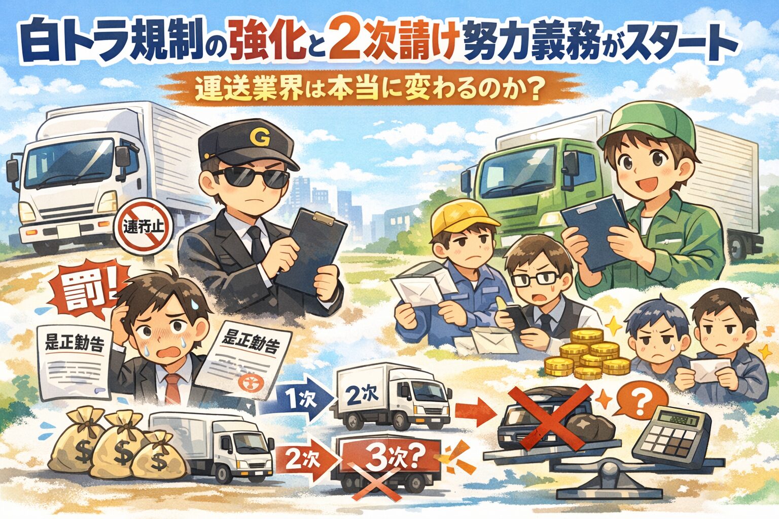 今、運送業界で大注目のトラック新法成立と下請法改正について分かりやすく説明しており、